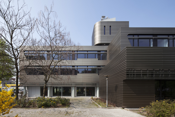 Oberstufenzentrum KFZ Technik Berlin Energetische Sanierung Das Oberstufenzentrum KFZ Technik Berlin, die von H. Stranz 1972 - 1976 errichtete ehemalige Porsche - Oberschule für KFZ Technik, begrenzt den Gierkeplatz in Berlin Charlottenburg nach Südwesten. Typisch für die 70-er Jahre wurden die gewachsenen städtebaulichen Setzungen ignoriert bzw. umgedeutet. Die Platzkante des Gierkeplatzes wurde zwar aufgenommen, am Übergang vom Platz in die Gierkezeile springt das Gebäude mit einem großen Schwung von der Straßenkante ins Blockinnere zurück, wo der Hauptbaukörper im ehemaligen Schulgarten des ersten Charlottenburger Schulgebäudes konzentriert wurde. |